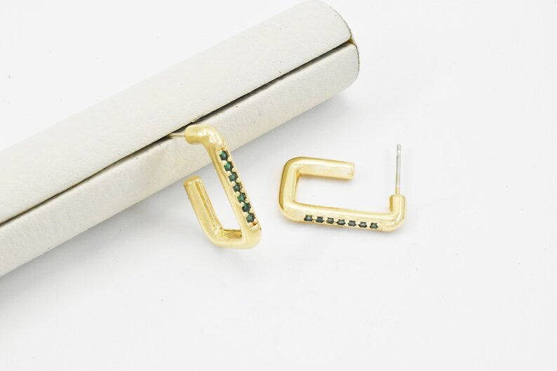CZ Earrings, EDO-177GEM, 2pcs, 16K Shiny Gold Plated Brass, Emerald, Nickel Free, 925 Silver Post, Enhanced Gold Plating